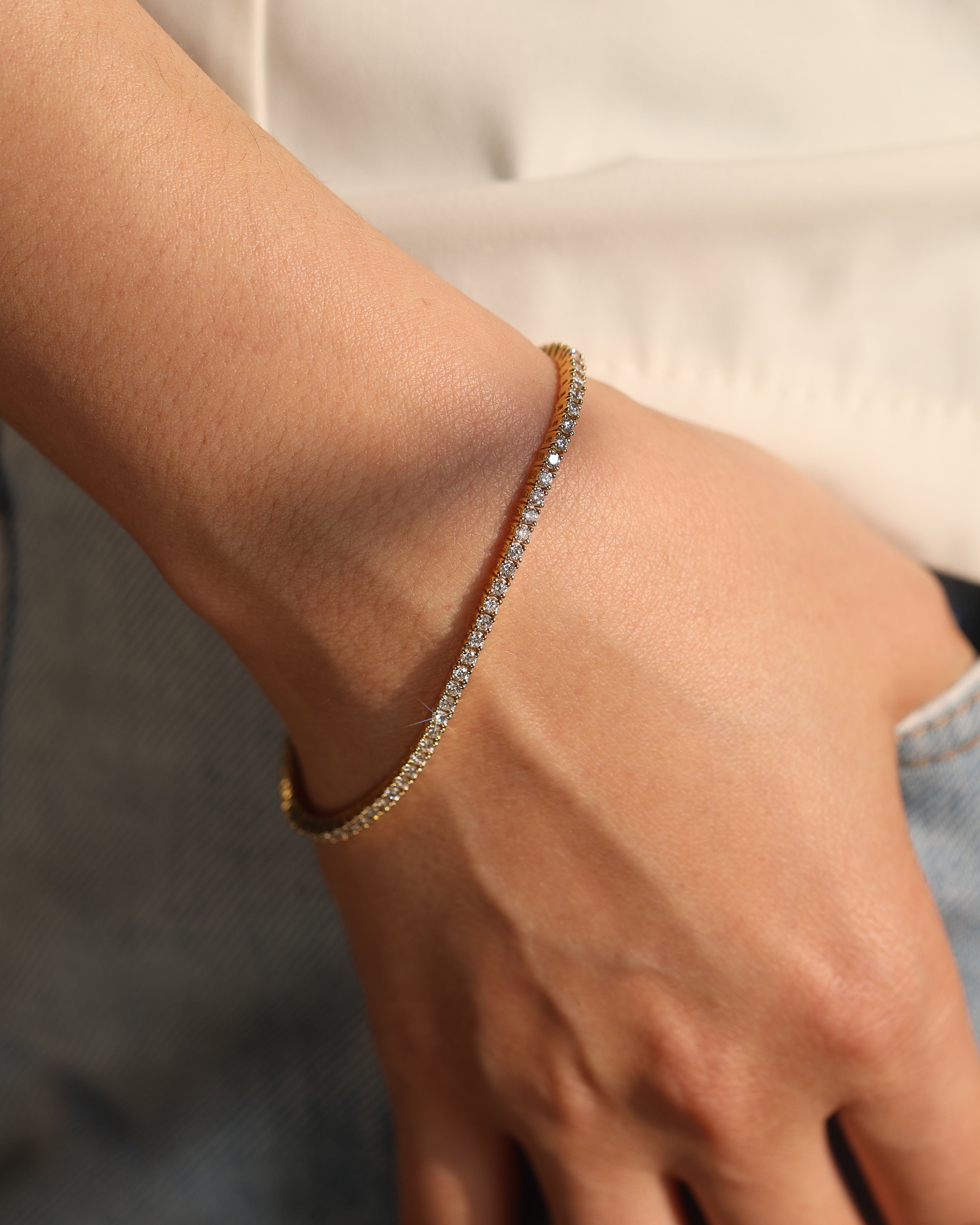 Add a touch of timeless beauty to your outfit with our elegant and simple Tennis Bracelet. Its subtle design is perfect for any occasion, making it a versatile and classic addition to your jewelry collection. With its understated charm, this bracelet is sure to become a staple piece in your wardrobe.